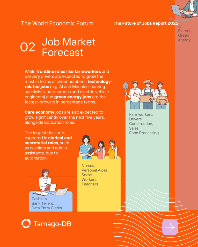 | Tech & Green: AI specialists, sustainability experts, and fintech engineers. | New Disruption: GenAI is now affecting creative roles like Graphic Designers. |